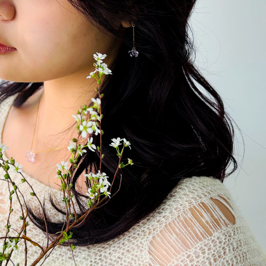 いつもiriser -イリゼ-をご愛顧いただき、誠にありがとうございます。 春の訪れを祝福する、”さくら”が期間限定で登場いたします。 春の訪れを象徴する花「さくら」。 今年は、淡いピンク色のガラスで花びらを表現しました。 小ぶりで愛らしくて、さりげなく春を感じていただける ベーシックなデザインに仕上げています。 発売期間:2/24-4/30 -さくらシリーズ- さくらネックレス さくらピアス さくらイヤリング