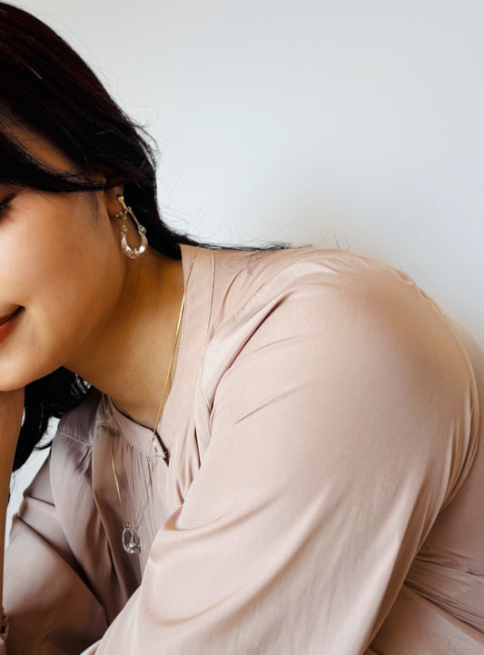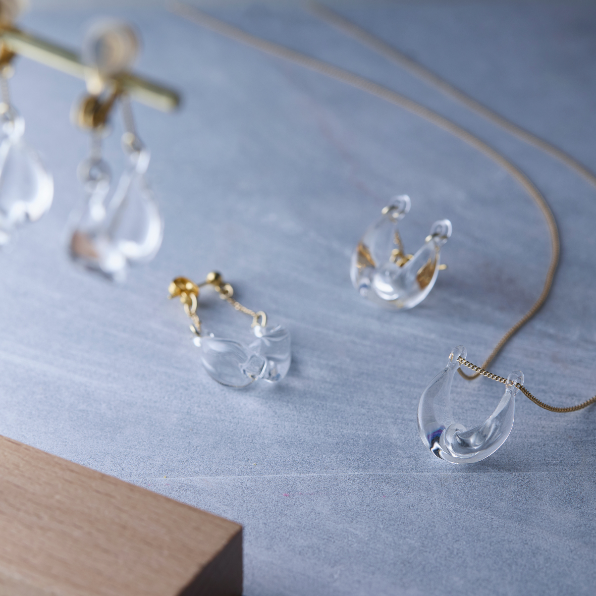 -Hikari- "あしたのじぶんをつくる"をコンセプトにしたHikariシリーズ。 どんな時も優しく包み込む“陽の光”をイメージしたガラスのピアスです。両面に施したカットによって、光が反射し、耳もとで凛とした輝きを放ちます。 夏の強い日差しから、やわらかな秋の光へと移ろうこの季節。そのやさしい光は静かな力となって、あしたの自分へと一歩を導いてくれるはずです。 お出かけの装いにそっと寄り添い、日常を少し明るく照らしてくれる存在として ぜひお楽しみください。 Hikari ネックレス 8,800円(税込) Hikari イヤリング 9,900円(税込) Hikari ピアス 9,900円(税込)