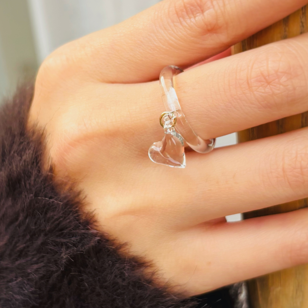 ハート クリア リングは手作りのため、多少の差異が生じますが、13~14号を目安に作成しております。