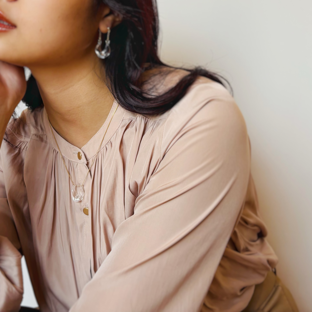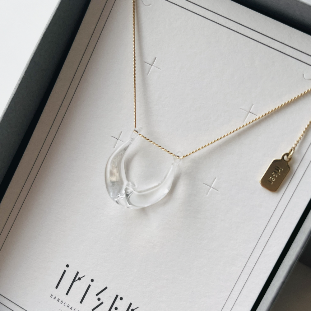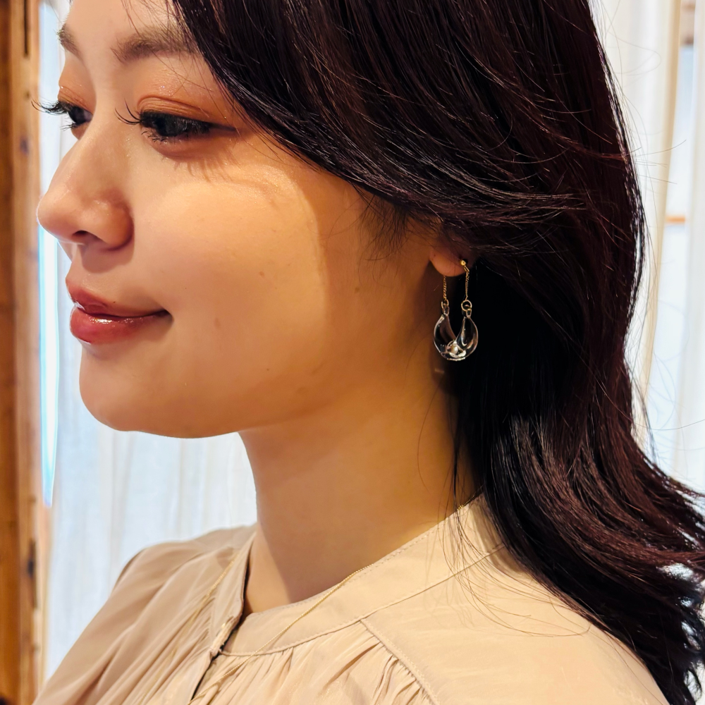 透明なゆるやかなウェーブは、水の流れのようにしなやかに揺れ、光を受けてきらめきます。