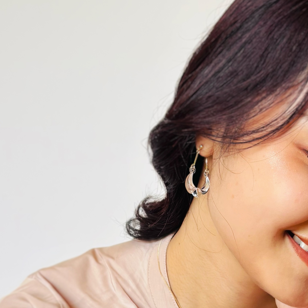 透明なゆるやかなウェーブは、水の流れのようにしなやかに揺れ、光を受けてきらめきます。