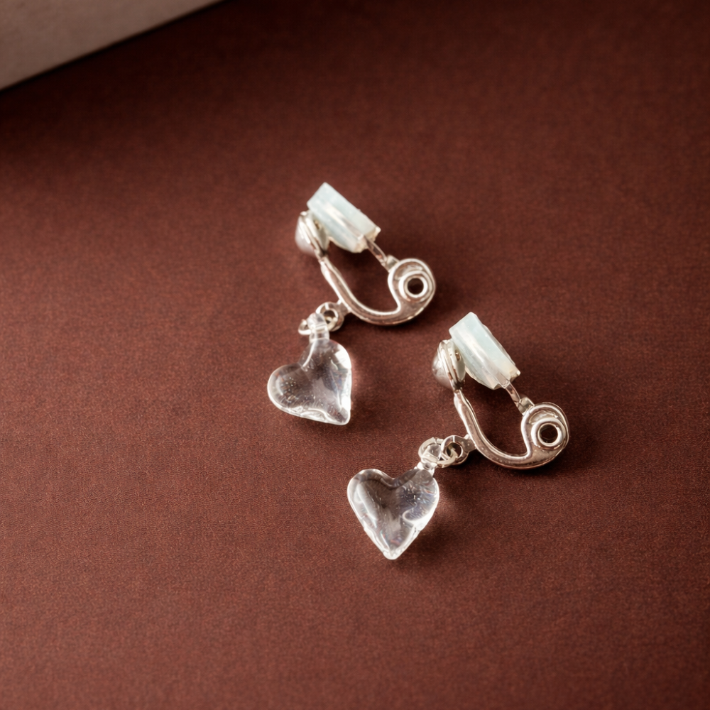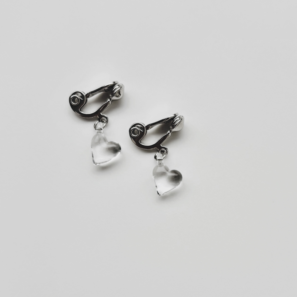 ハート クリア イヤリング(金具シルバー)