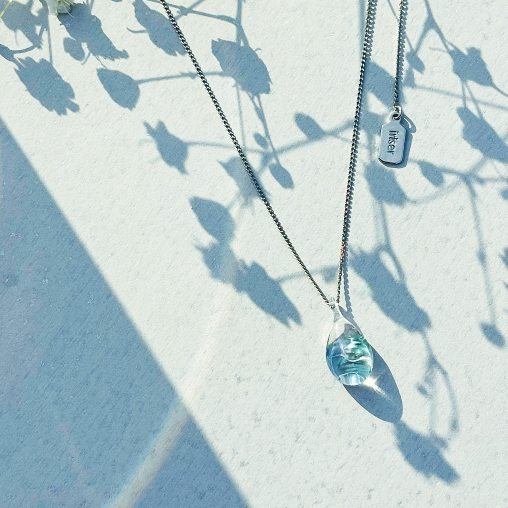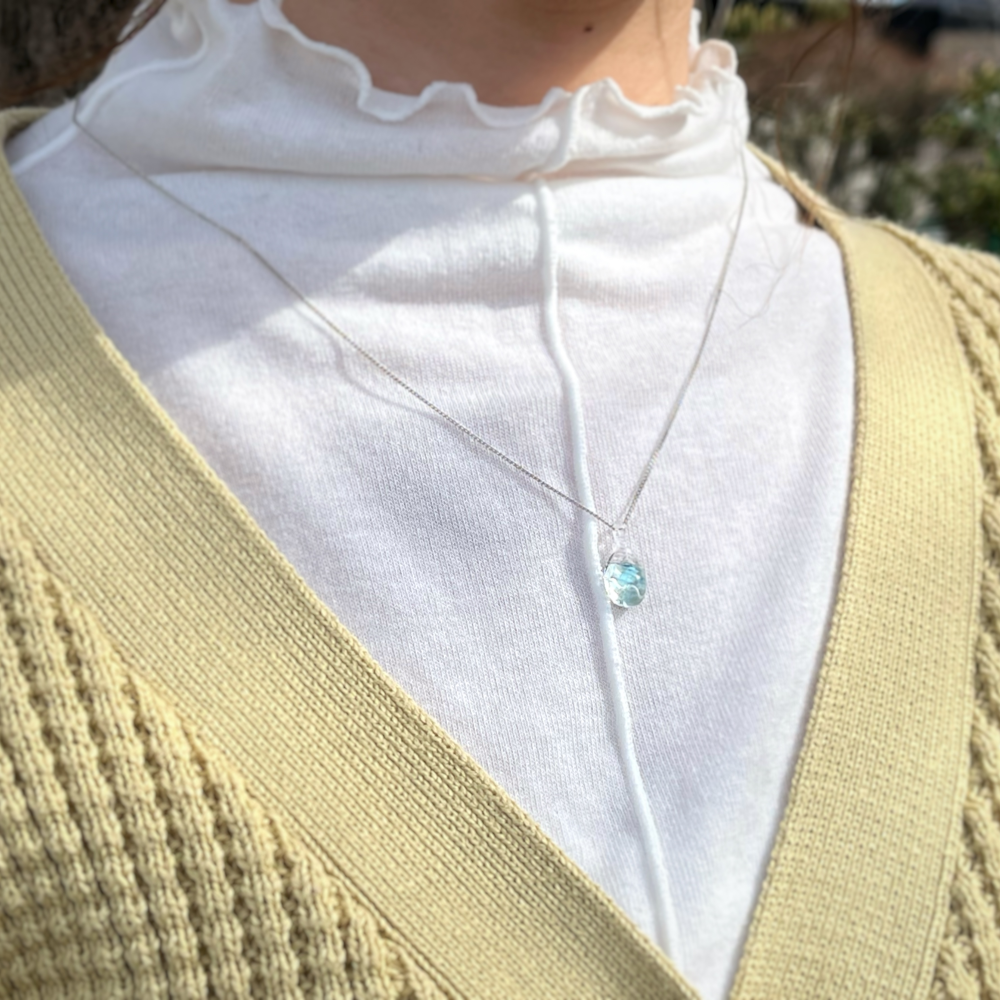 ネックレスのチェーンは、スライドボール式のため、長さ調整が可能です。