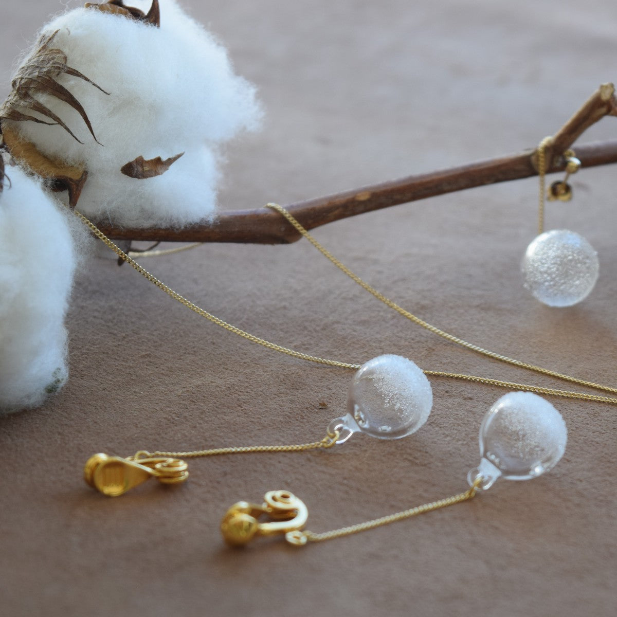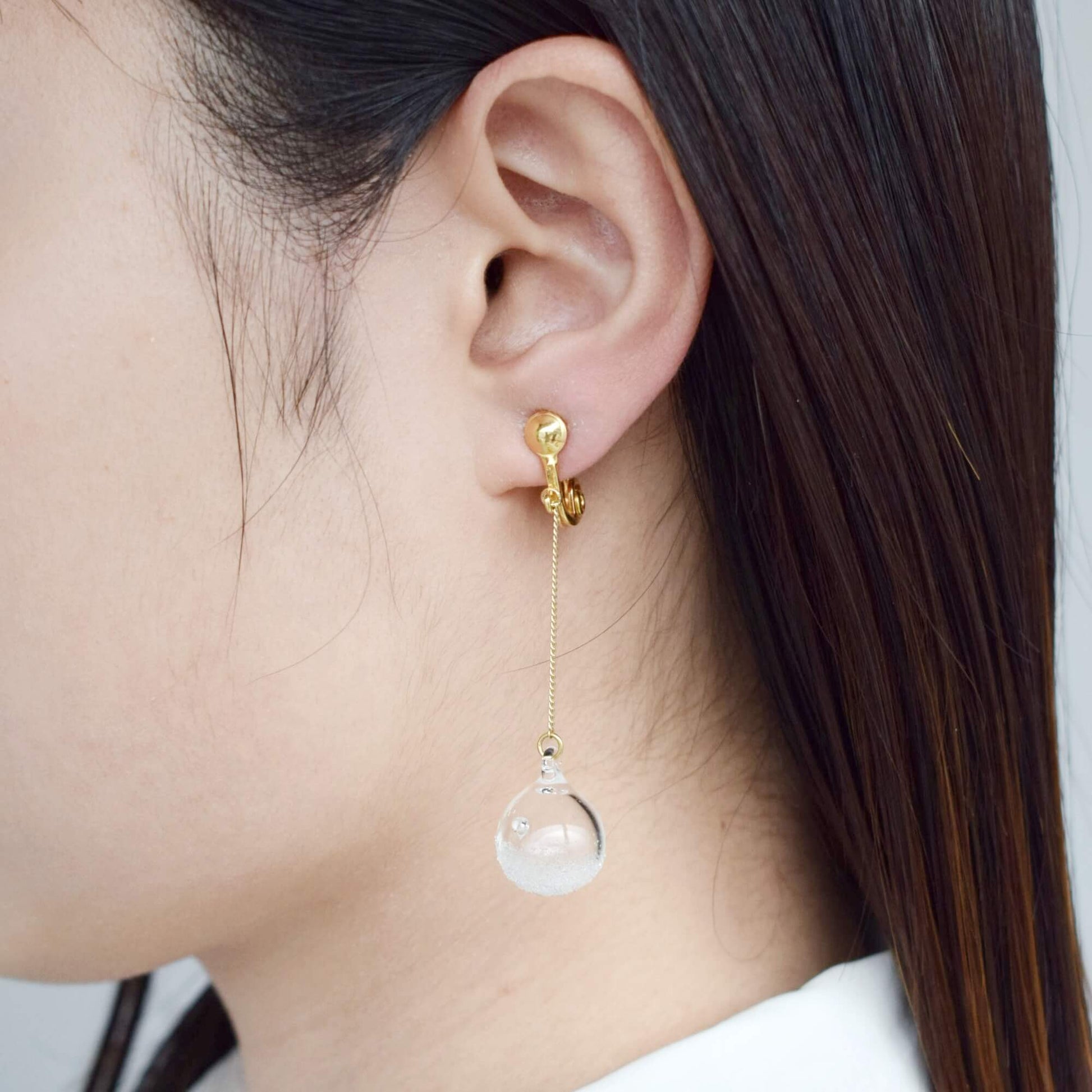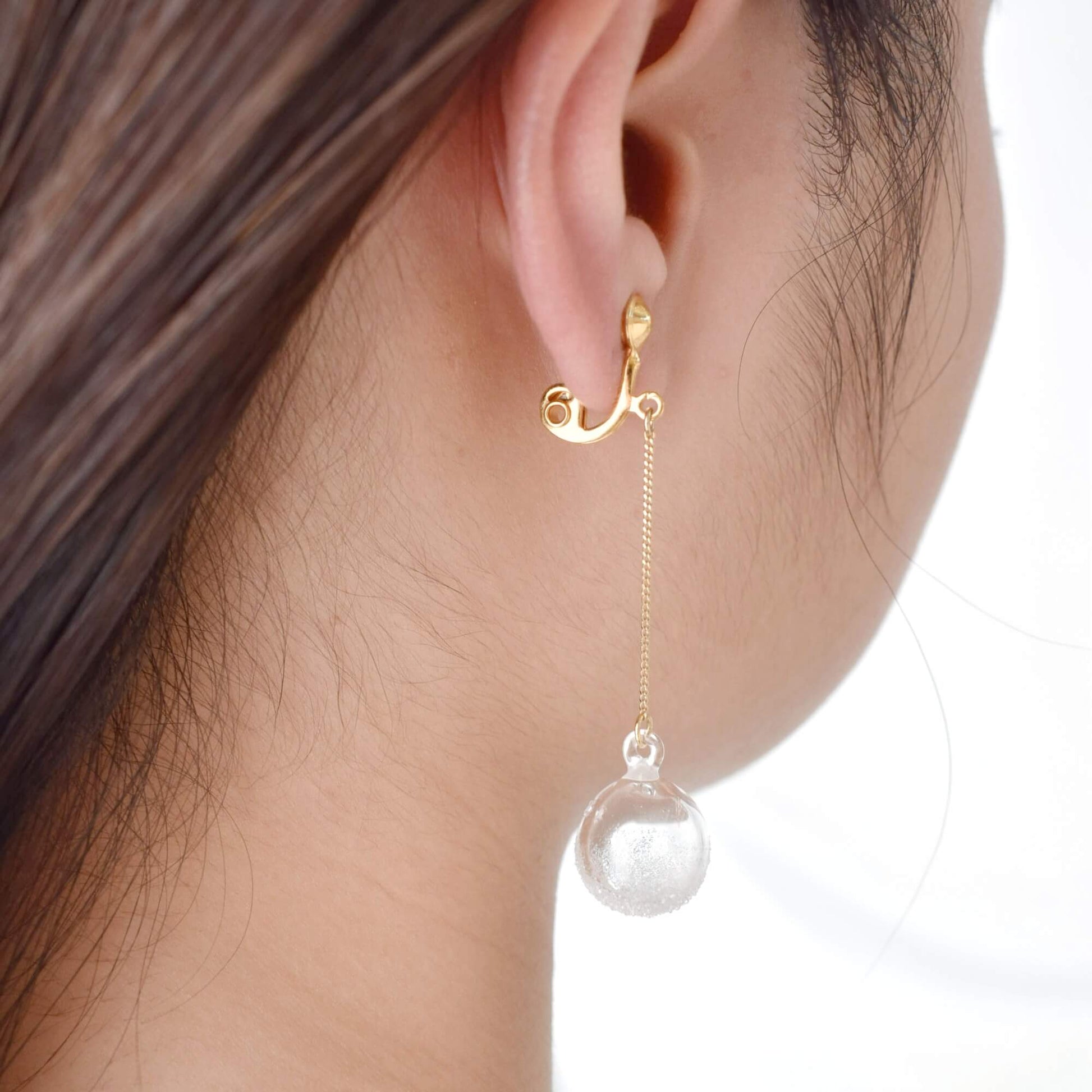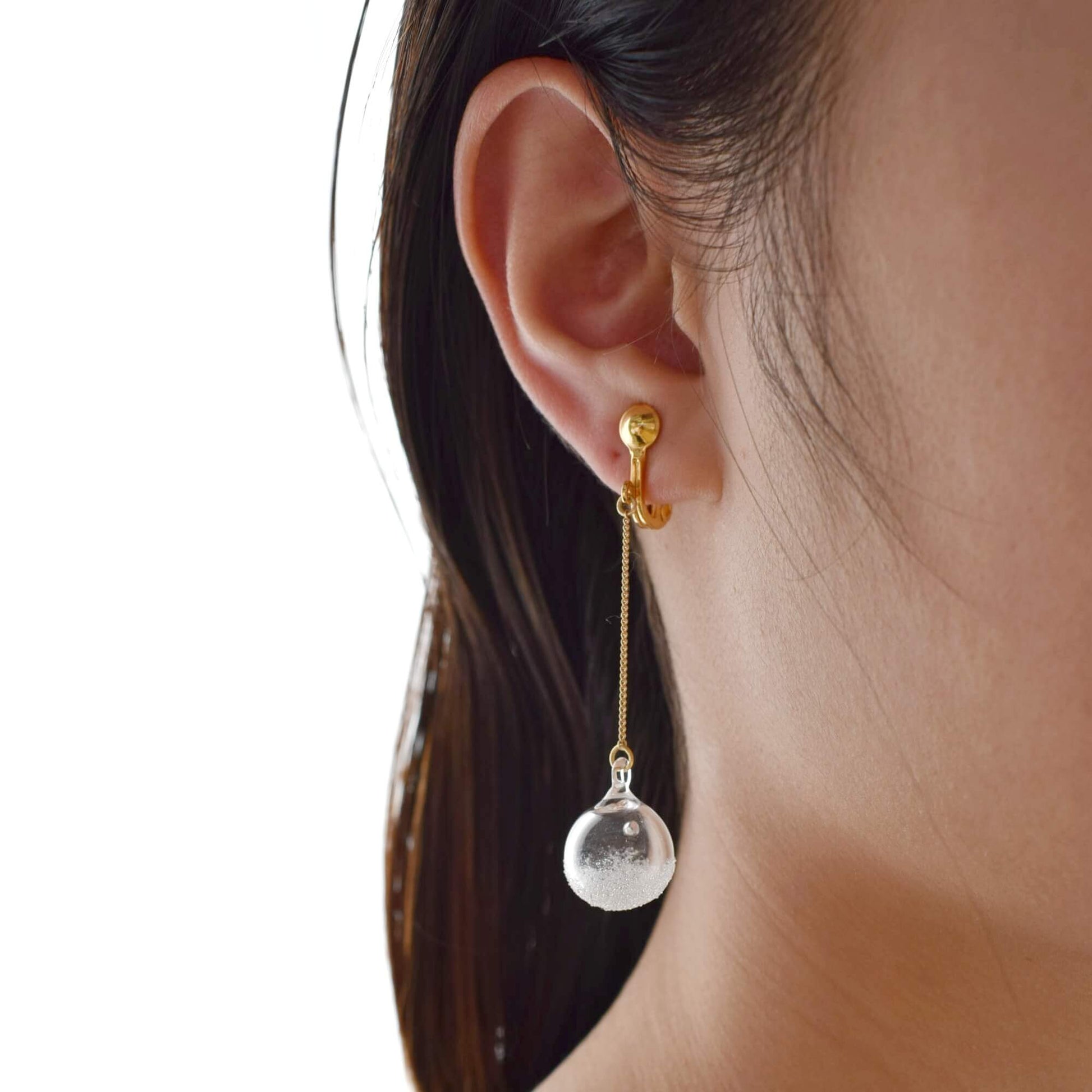 イヤリングパーツには、耳の厚みに合わせて微調整が可能なカシメ式のパーツを使用しています。