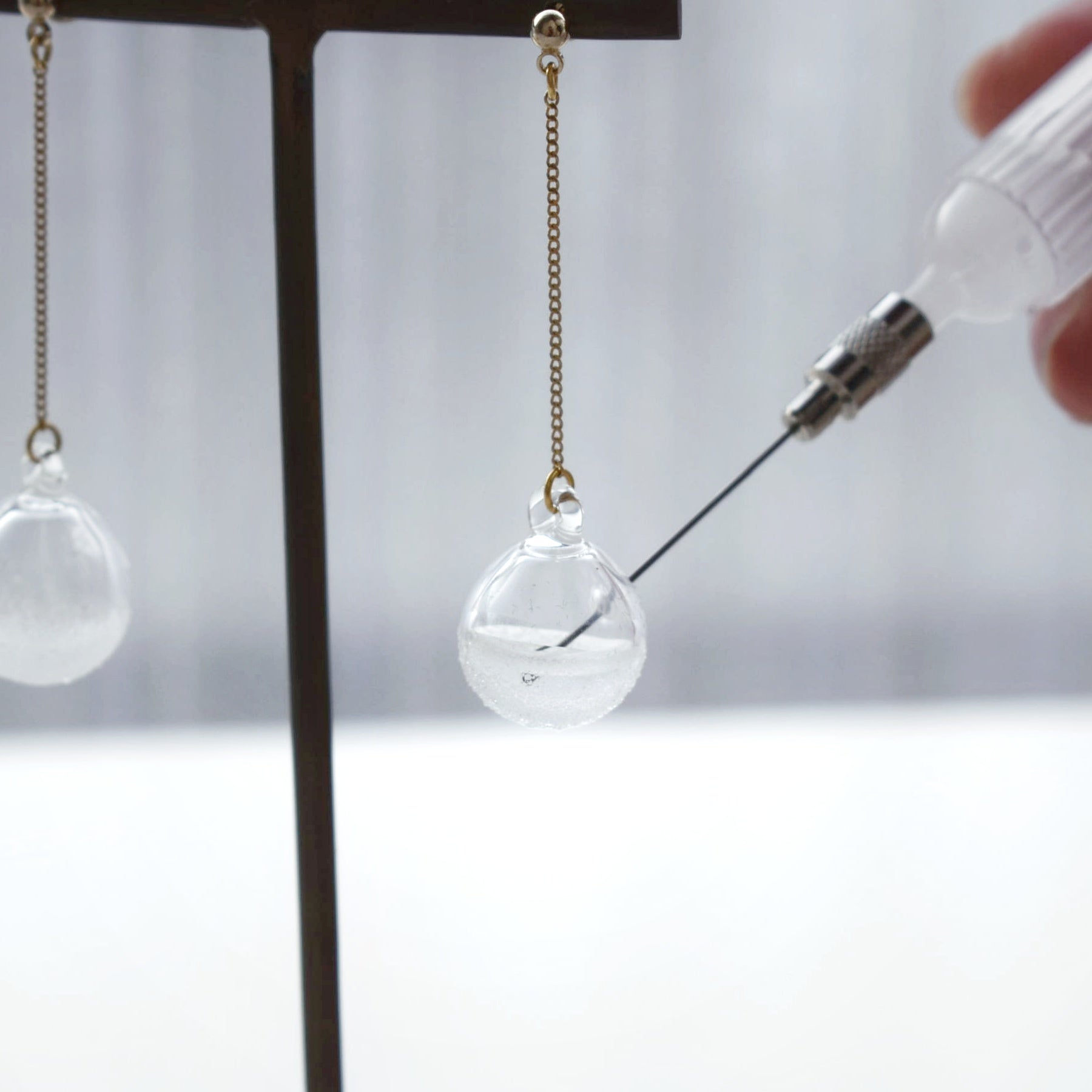 入れる際は、スポイトをガラス部分の穴にしっかり差し込んでからゆっくり注入します。