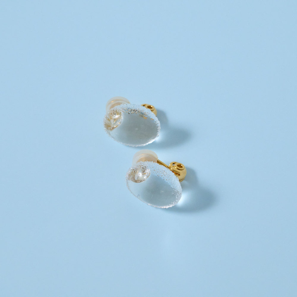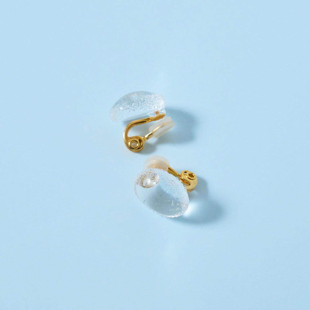 イヤリングパーツには、耳の厚みに合わせて微調整が可能なカシメ式のパーツを使用しています。