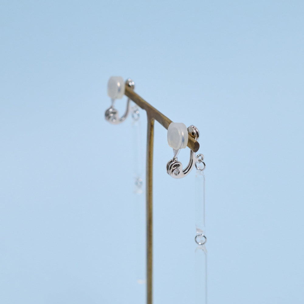 イヤリングパーツには、耳の厚みに合わせて微調整が可能なカシメ式のパーツを使用しています。