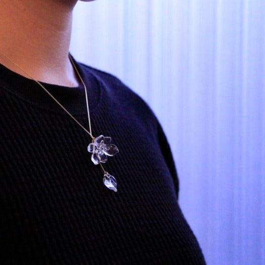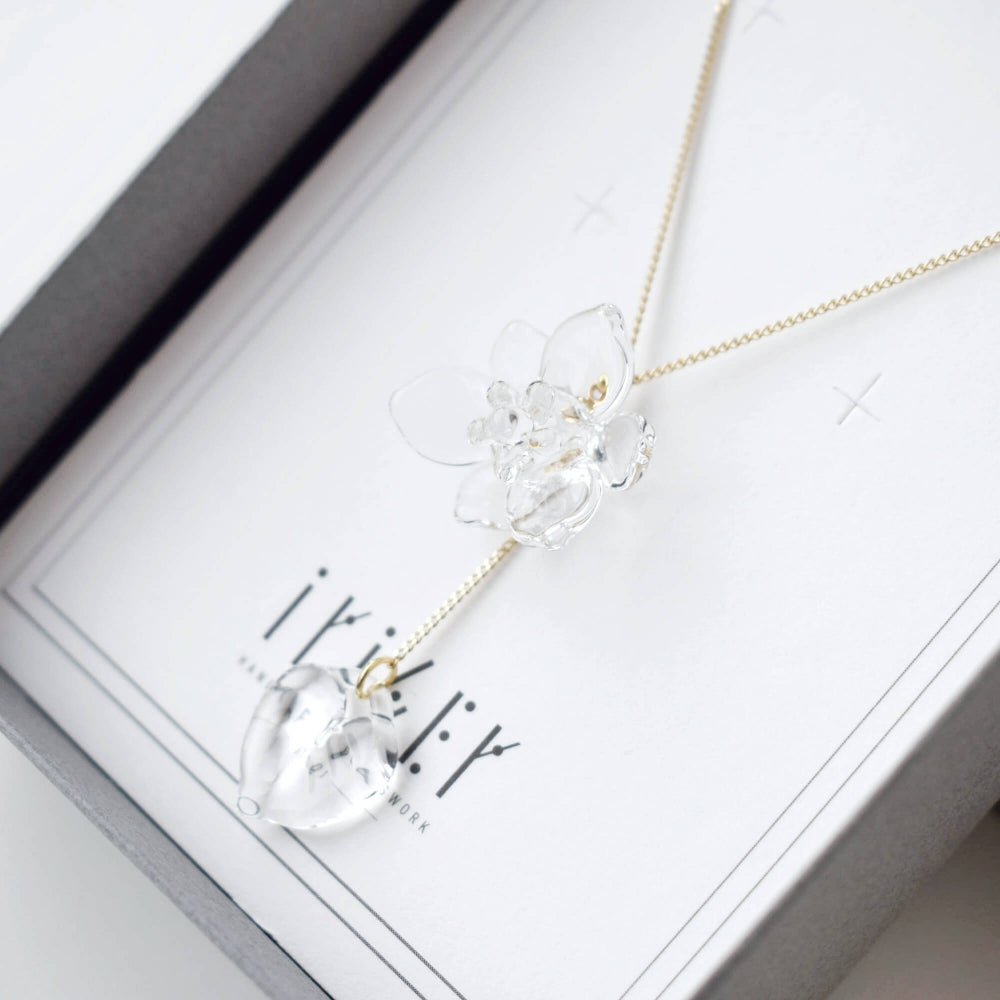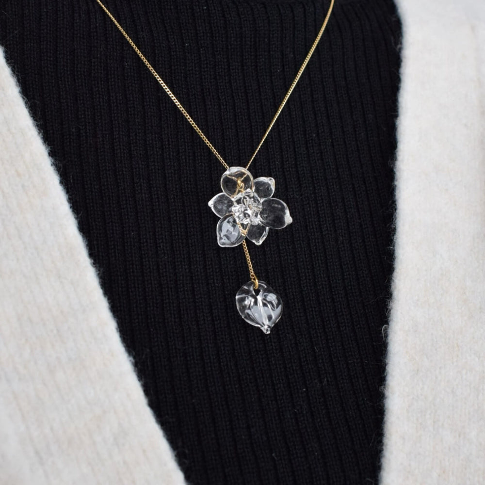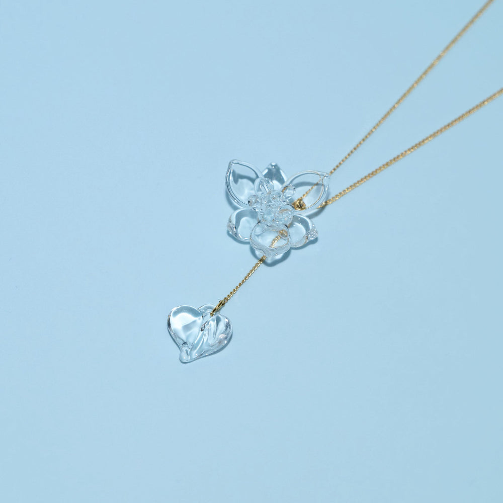 水葵の花が持つ生命力と凛々しさを感じさせる、手仕事ならではの繊細なデザインのネックレス。