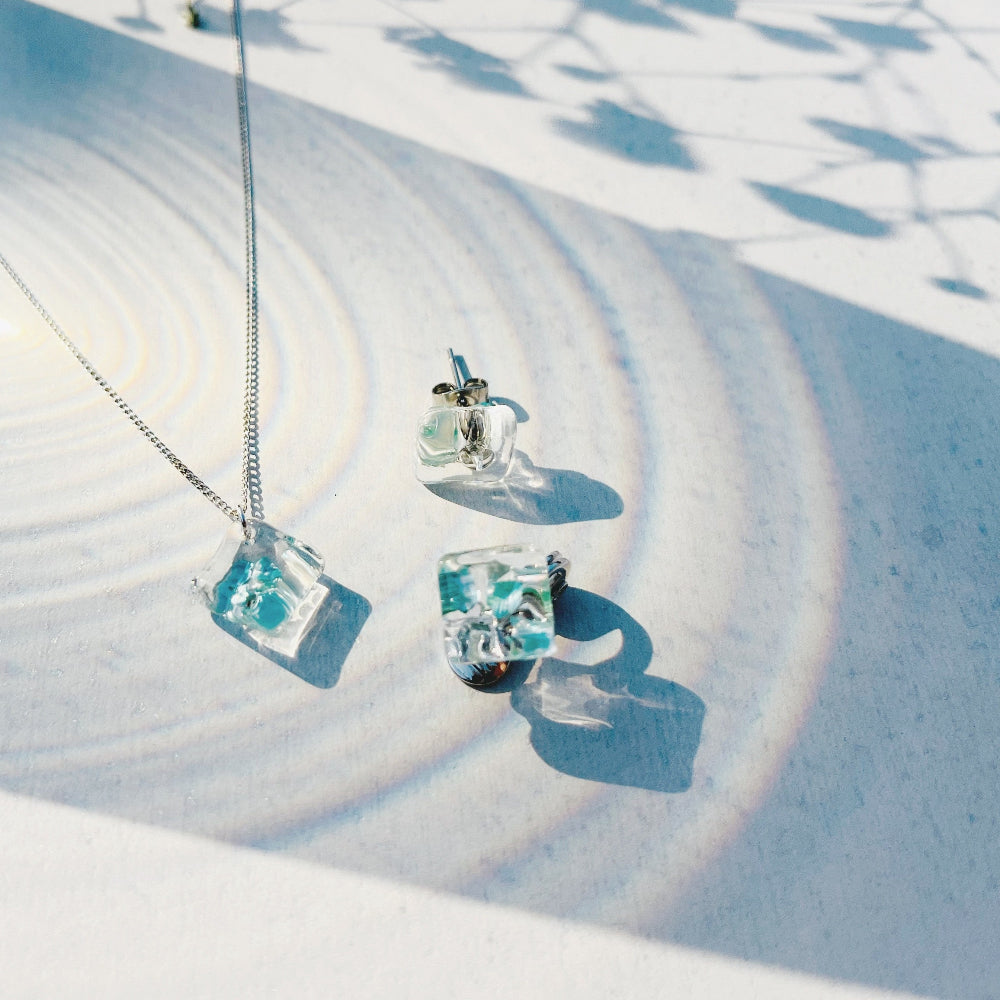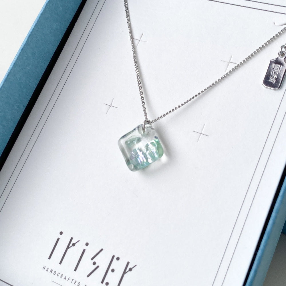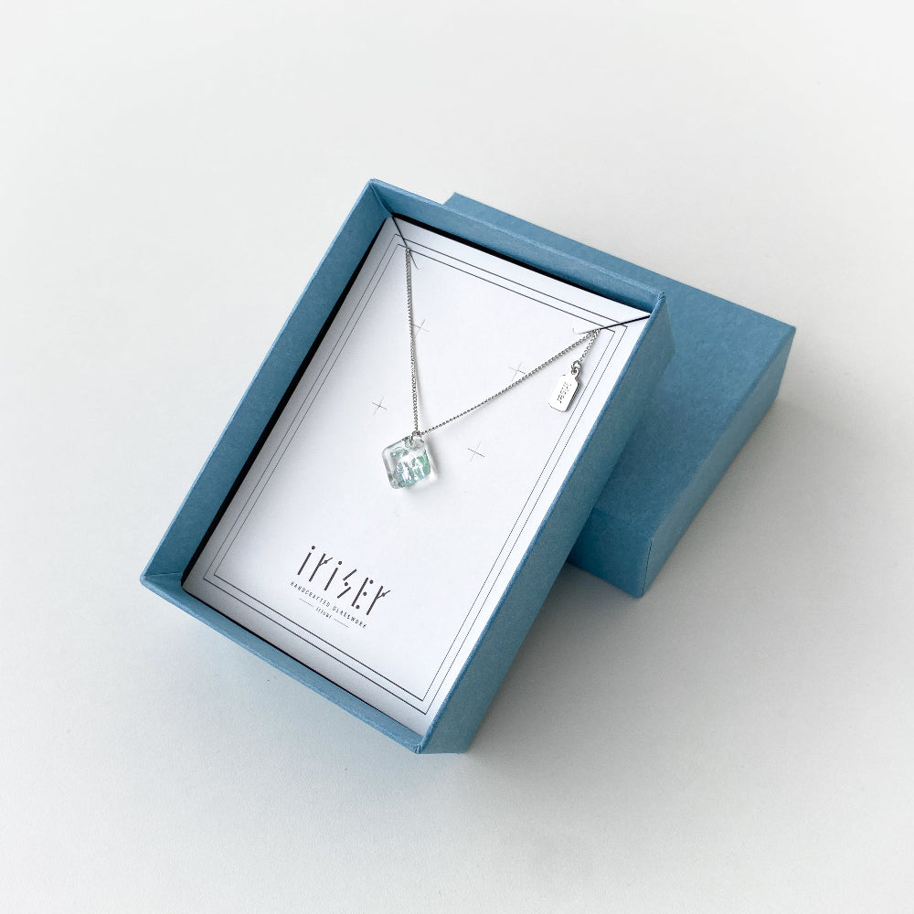 | サイズ | ガラスサイズ:13×13(mm)[一辺長さ10mm](厚み5mm) チェーン長さ:50cm(スライドボール使用) |