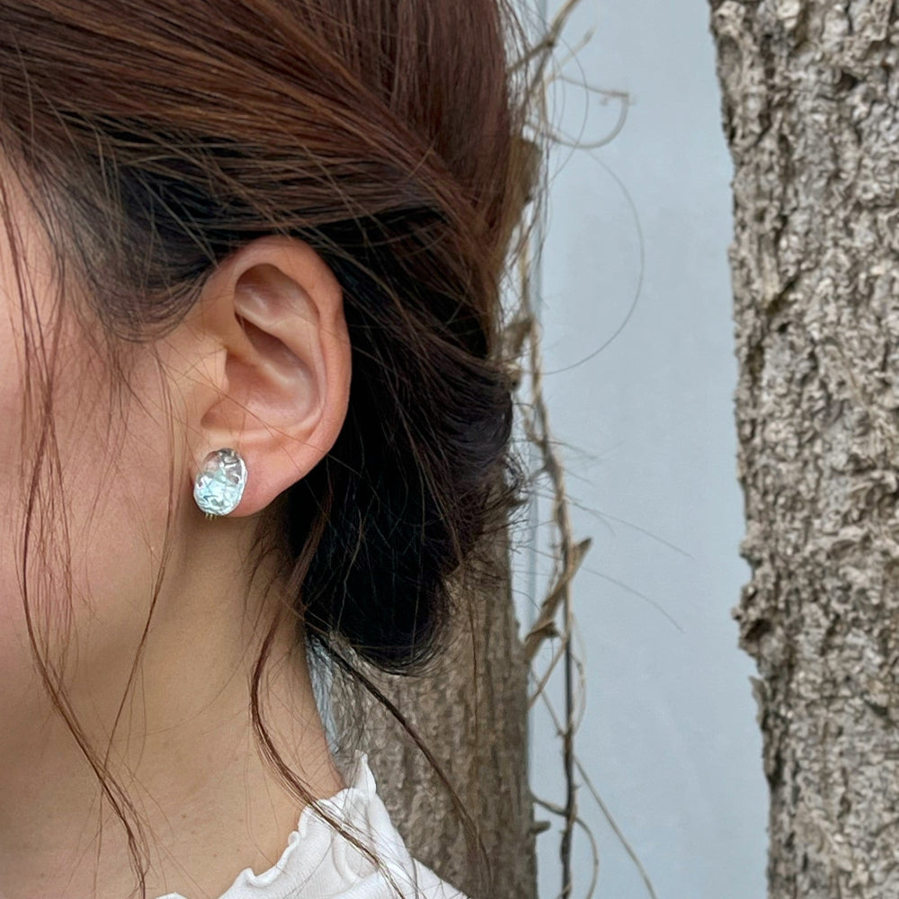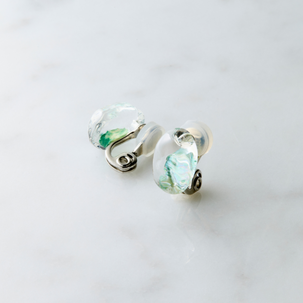 イヤリングパーツには、耳の厚みに合わせて微調整が可能なカシメ式のパーツを使用しています。