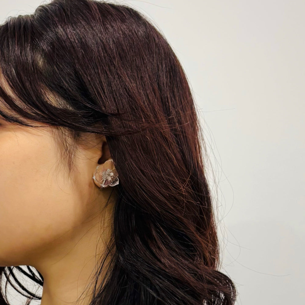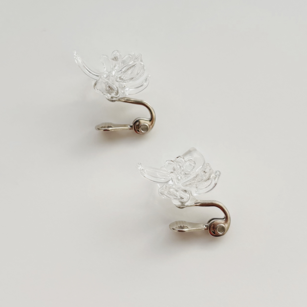 水葵の花が持つ生命力と凛々しさを感じさせる、手仕事ならではの繊細なデザインのイヤリング。