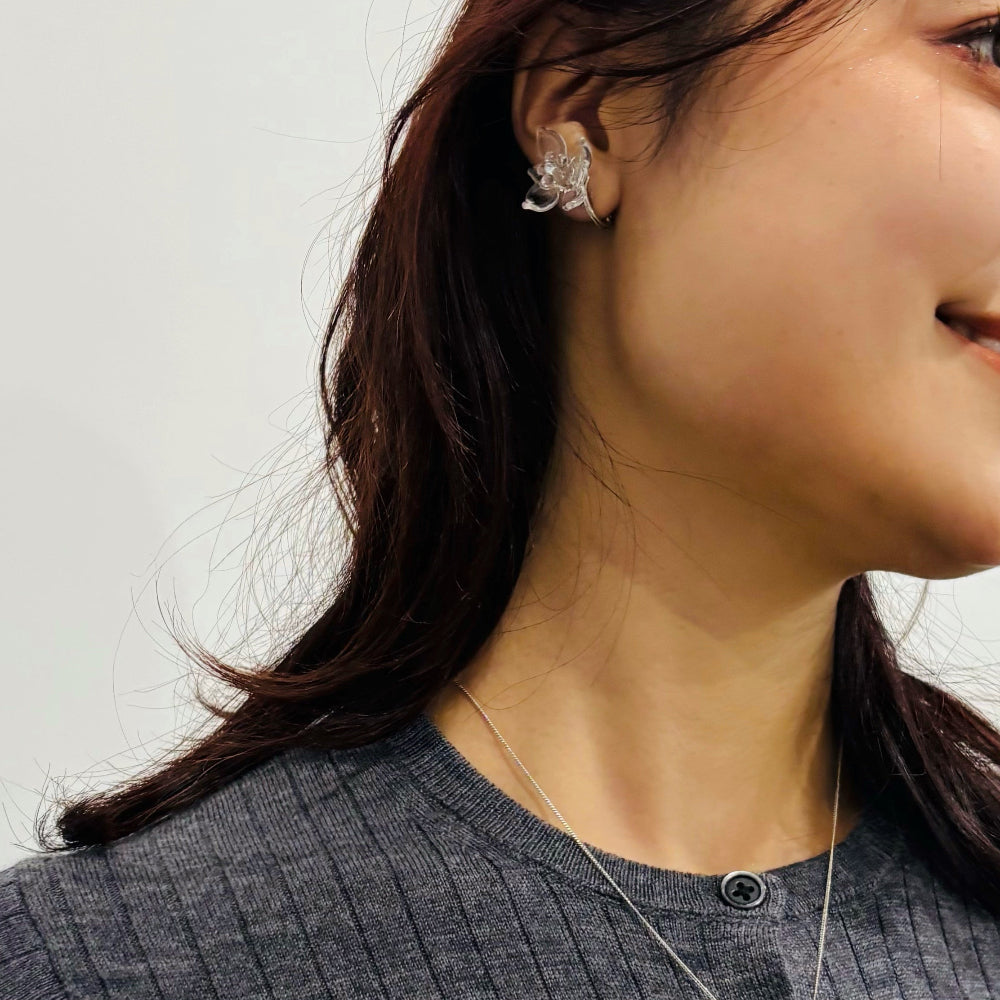 イヤリングパーツには、耳の厚みに合わせて微調整が可能なカシメ式のパーツを使用しています。