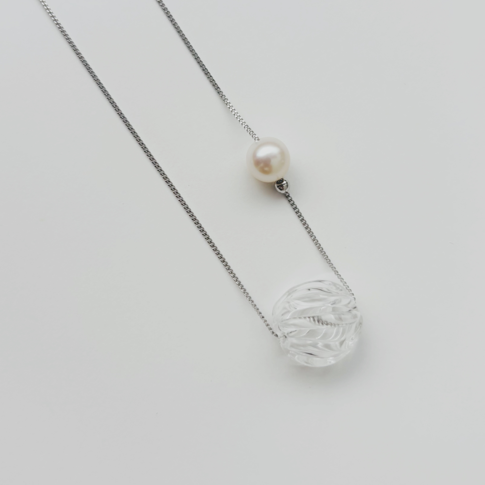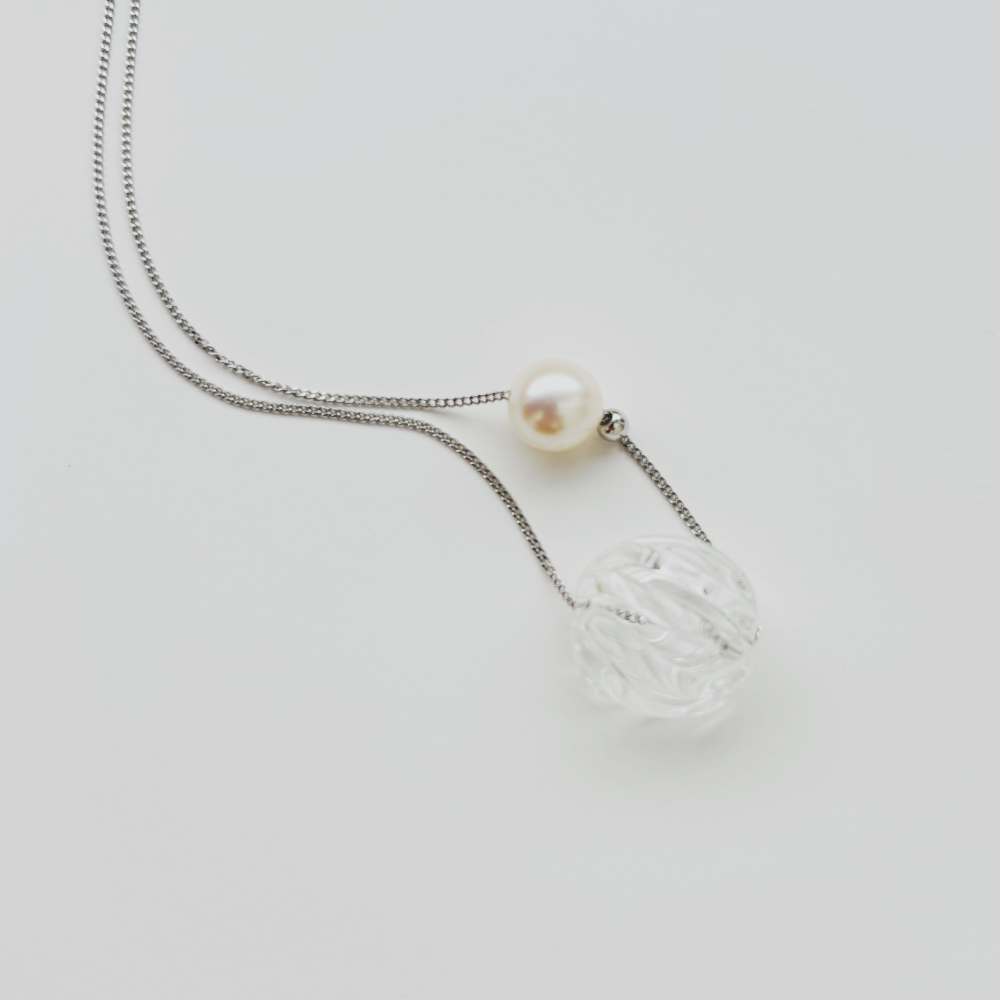 ガラスとパールの間にスライドボールを使用することで、パール位置を自由に変えられるデザインになっています。