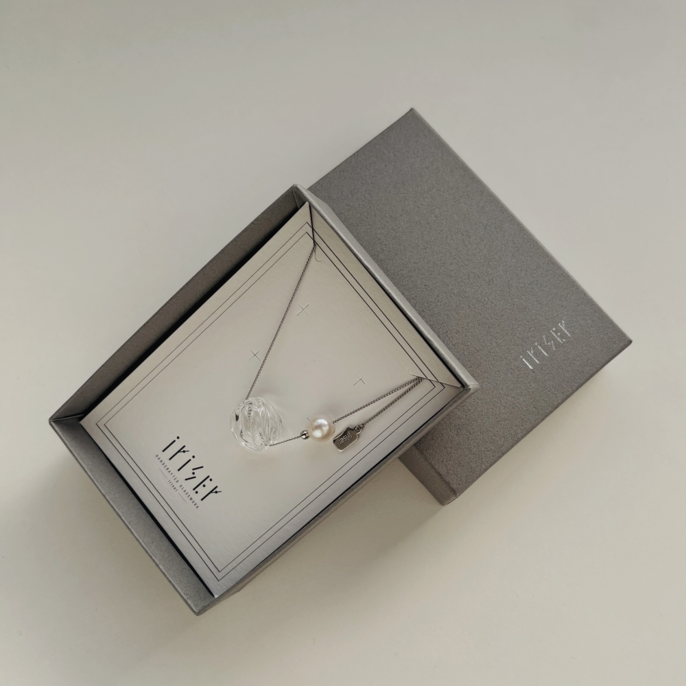 iriserの職人がひとつひとつ丁寧に制作したガラスアクセサリーと、日々表情を変える大海原で、大自然の力によって育まれた あこや真珠。