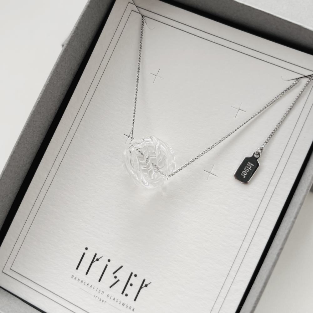 サーフィンが盛んな南相馬の風と波を表現したガラスのネックレス。