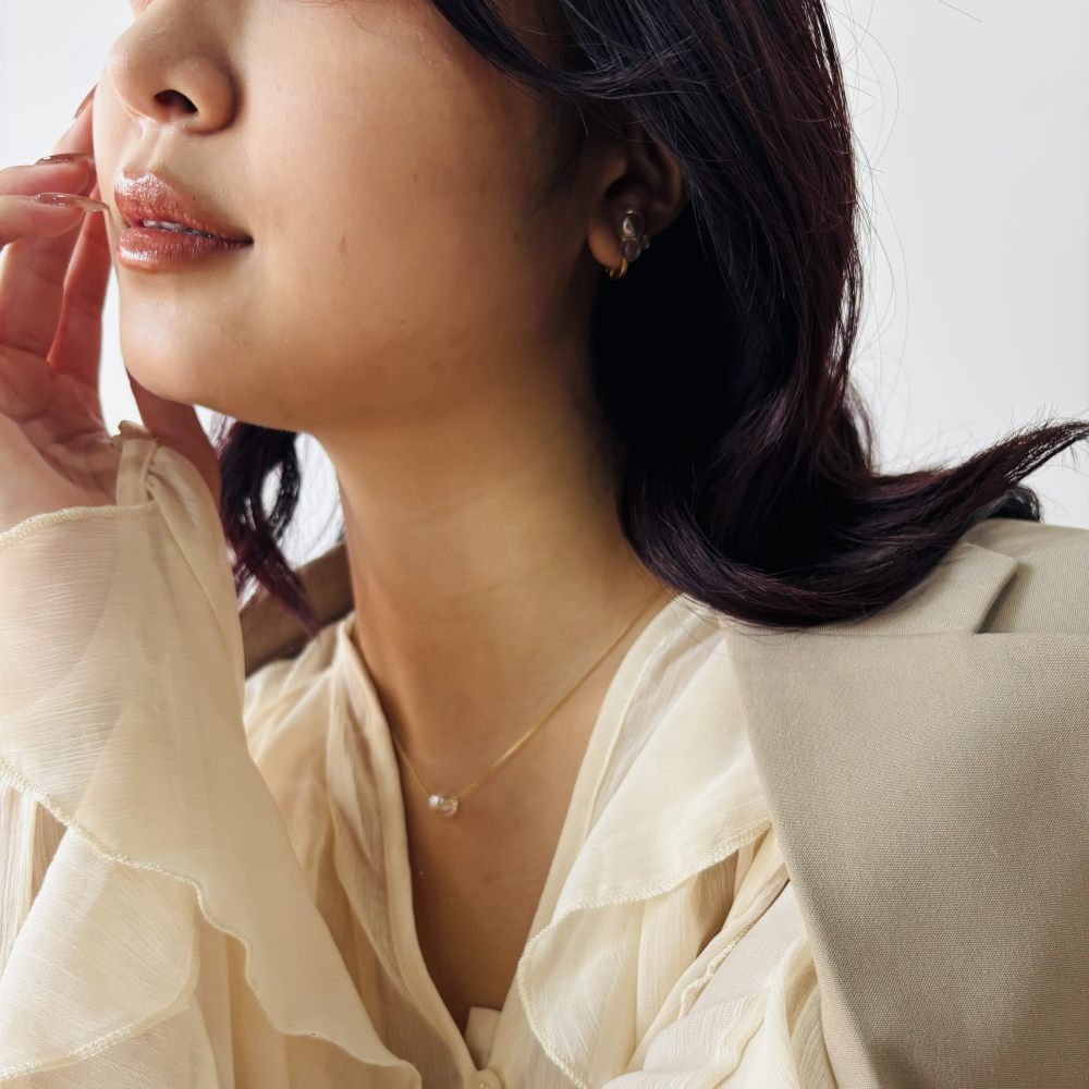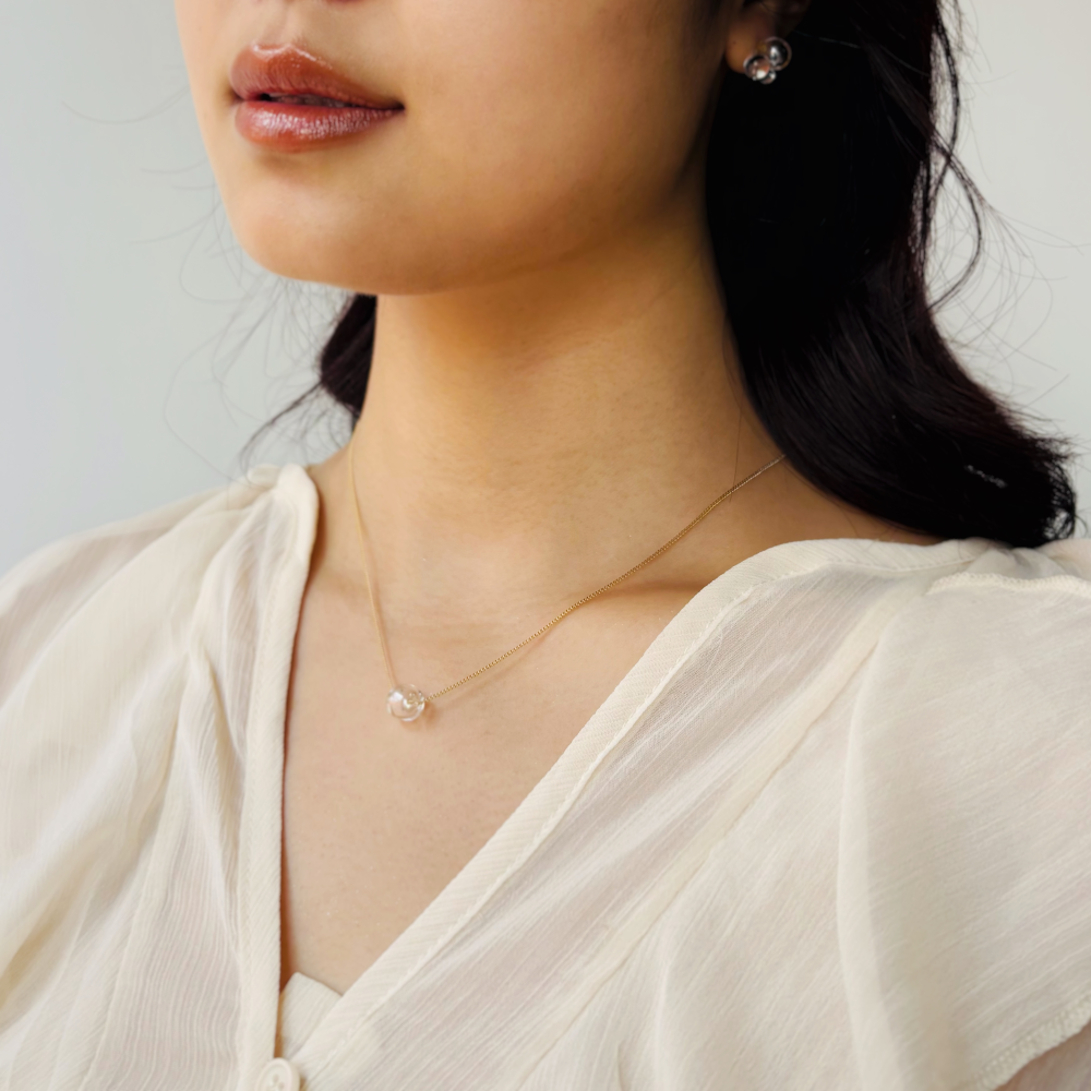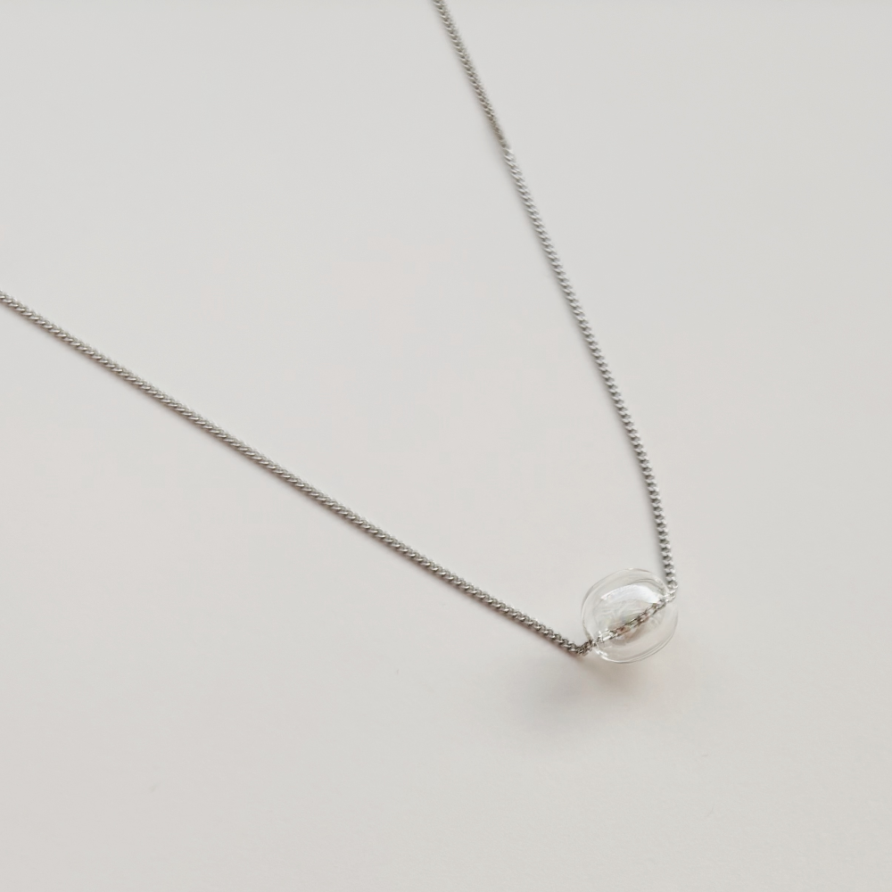 ネックレスのチェーンは、スライドボール式のため、長さ調整が可能です。